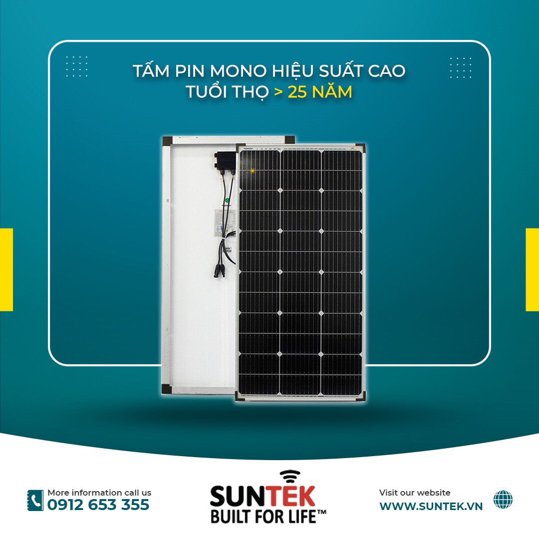 - Suntek chọn và sử dụng tấm pin mặt trời chất lượng cao cấp, bảo hành lâu dài cho khách hàng. Khiến cho khách hàng hoàn toàn yên tâm khi dùng sản phẩm của Suntek.