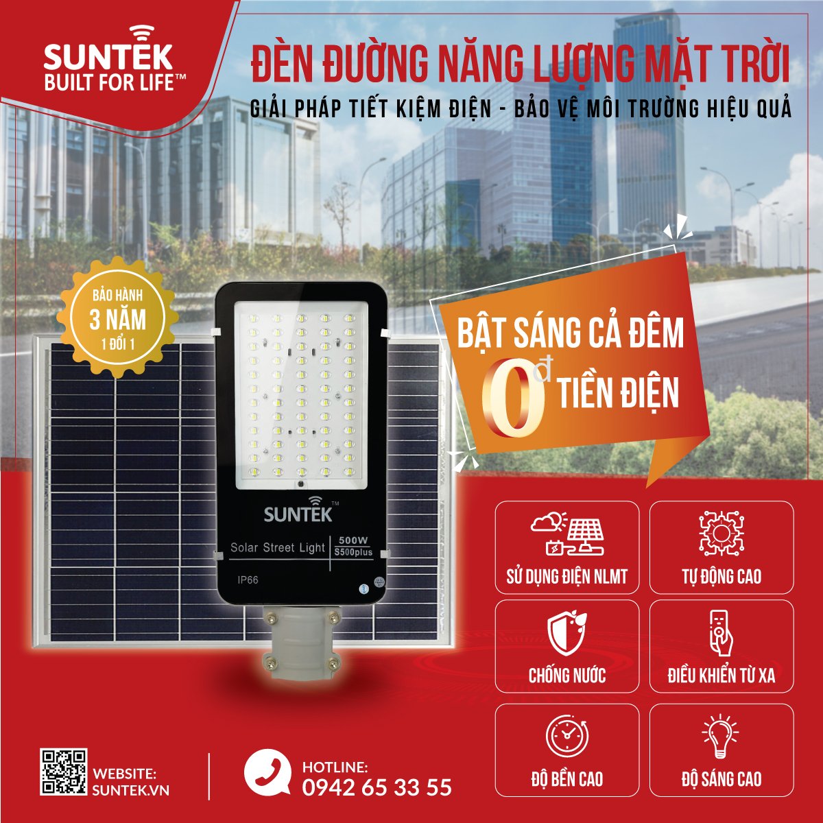 - Khi sản xuất, lắp đặt sản phẩm Suntek luôn đặt uy tín thương hiệu lên hàng đầu. Mọi nguyên liệu sản xuất đều dùng loại cao cấp, không dùng nguyên vật liệu tái chế (đặc biệt là Pin dự trữ) ➡ Độ bền và tuổi thọ sản phẩm cao.