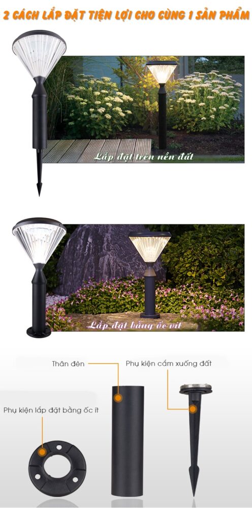 Bạn sẽ không tốn quá nhiều thời gian và công sức để lắp đặt một chiếc đèn năng lượng. So với đèn truyền thống phải đi dây điện dưới lòng đất phức tạp và tốn tiền của, công sức thì chiếc đèn vườn năng lượng quả thật là một phát minh có thể khắc phục những nhược điểm này. Nếu sân vườn nhà bạn nền đất? Bạn chỉ cần cắm trực tiếp đèn xuống là được. Nếu là sân bê tông? Chỉ cần thêm một chiếc máy khoan nhỏ cùng vài ba con ốc vít là xong, cũng không là vấn đề lớn phải không nào.